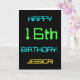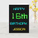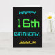 This simple and fun birthday greeting card design features a message like "HAPPY 16th BIRTHDAY, JESSICA!". Its look is inspired by the field of digital computing. The name on the front and the message on the inside can be customized. It could be sent or given to somebody who is celebrating their sixteenth birthday, and who perhaps works as a computer system administrator, a computer programmer, a network administrator, an electrical engineer, a software developer, or who otherwise enjoys using computers. [~Z0000100]