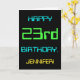 This simple and fun birthday greeting card design features a message like "HAPPY 23rd BIRTHDAY, JENNIFER!". It also features a fun look inspired by digital computing. The name on the front and the message on the inside can be personalized. It could be sent or given to somebody who is celebrating their twenty third birthday, and who perhaps works (or worked prior to retirement) as a database administrator, a computer programmer, a network administrator, a software developer, an electrical engineer, or who otherwise enjoys using computers. [~Z0000100]