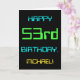 This simple and fun birthday greeting card design features a message like "HAPPY 53rd BIRTHDAY, MICHAEL!". Its appearance is inspired by the field of digital computing. The name on the front and the message on the inside can be personalized. It could be sent or given to somebody who is celebrating their fifty third birthday, and who perhaps works (or worked prior to retirement) as a computer programmer, a software developer, a database administrator, a network administrator, an electronics engineer, or who otherwise enjoys using computers. [~Z0000100]