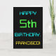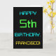This simple and fun birthday greeting card design features a message like "HAPPY 5th BIRTHDAY, FRANCISCO!". It also features a fun appearance inspired by digital computing. The name on the front and the message on the inside can be customized. It could be sent or given to somebody who is celebrating their fifth birthday, and who perhaps works as a computer system administrator, a computer programmer, a network administrator, an electrical engineer, a software developer, or who otherwise enjoys using computers. [~Z0000100]