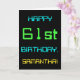 This simple and fun birthday greeting card design features a message like "HAPPY 61st BIRTHDAY, SAMANTHA!". Its look is inspired by the field of digital computing. The name on the front and the message on the inside can be customized. It could be sent or given to somebody who is celebrating their sixty first birthday, and who perhaps works (or worked prior to retirement) as a computer programmer, a software developer, a database administrator, a network administrator, an electronics engineer, or who otherwise enjoys using computers. [~Z0000100]