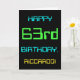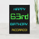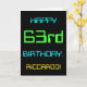 This simple and fun birthday greeting card design features a message like "HAPPY 63rd BIRTHDAY, RICCARDO!". Its look is inspired by the field of digital computing. The name on the front and the message on the inside can be customized. It could be sent or given to somebody who is celebrating their sixty third birthday, and who perhaps works (or worked prior to retirement) as a computer system administrator, a computer programmer, a network administrator, an electrical engineer, a software developer, or who otherwise enjoys using computers. [~Z0000100]