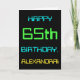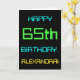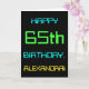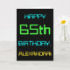 This simple and fun birthday greeting card design features a message like "HAPPY 65th BIRTHDAY, ALEXANDRA!". Its look is inspired by the field of digital computing. The name on the front and the message on the inside can be personalized. It could be sent or given to somebody who is celebrating their sixty fifth birthday, and who perhaps works as a computer programmer, a software developer, a database administrator, a network administrator, an electronics engineer, or who otherwise enjoys using computers. [~Z0000100]