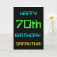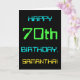 This simple and fun birthday greeting card design features a message like "HAPPY 70th BIRTHDAY, SAMANTHA!". It also features a fun appearance inspired by digital computing. The name on the front and the message on the inside can be customized. It could be sent or given to somebody who is celebrating their seventieth birthday, and who perhaps works as a computer system administrator, a computer programmer, a network administrator, an electrical engineer, a software developer, or who otherwise enjoys using computers. [~Z0000100]