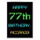This simple and fun birthday greeting card design features a message like "HAPPY 77th BIRTHDAY, RICCARDO!". Its look is inspired by the field of digital computing. The name on the front and the message on the inside can be customized. It could be sent or given to somebody who is celebrating their seventy seventh birthday, and who perhaps works (or worked prior to retirement) as a computer system administrator, a computer programmer, a network administrator, an electrical engineer, a software developer, or who otherwise enjoys using computers. [~Z0000100]