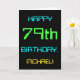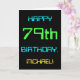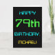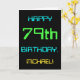 This simple and fun birthday greeting card design features a message like "HAPPY 79th BIRTHDAY, MICHAEL!". It also features a fun look inspired by digital computing. The name on the front and the message on the inside can be personalized. It could be sent or given to somebody who is celebrating their seventy ninth birthday, and who perhaps works (or worked prior to retirement) as a computer system administrator, a computer programmer, a network administrator, an electrical engineer, a software developer, or who otherwise enjoys using computers. [~Z0000100]