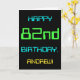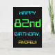 This simple and fun birthday greeting card design features a message like "HAPPY 82nd BIRTHDAY, ANDREW!". It also features a fun look inspired by digital computing. The name on the front and the message on the inside can be personalized. It could be sent or given to somebody who is celebrating their eighty second birthday, and who perhaps works (or worked prior to retirement) as a computer programmer, a software developer, a database administrator, a network administrator, an electronics engineer, or who otherwise enjoys using computers. [~Z0000100]