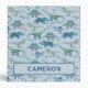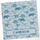 Lots of blue dinosaurs, Tyrannosaurus rex, Spinosaurus, Stegosaurus, Diplodocus and Triceratops. Original art by Nic Squirrell. Change the name to personalize.