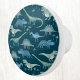 Fun blue and green dinosaurs on a dark teal green background. Tyrannosaurus Rex, Triceratops, Diplodocus, Stegasaur and Spinosaur. Perfect for a child’s nursery, bedroom or playroom. Original art by Nic Squirrell.