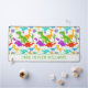 A lovely colorful cartoon dinosaur patterned desk mat . Bright and fun prehistoric design with a mix of dinosaurs, T-Rex, Tyrannosaurus Rex, Triceratops, Brontosaurus, Dilophosaurus, Iguanodon, Pteranodon ,Stegosaurus and dino eggs all on a white background. Personalize with the child's name to make this a special desk decor for those boys and girls who love dinosaurs.