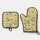 Fun Dinosaur Pattern Yellow Oven Mitt & Pot Holder Set