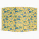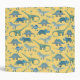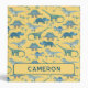 Lots of blue dinosaurs, Tyrannosaurus rex, Spinosaurus, Stegosaurus, Diplodocus and Triceratops on a sunny yellow background. Original art by Nic Squirrell. Change the name to personalize.