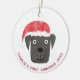 Cute and adorable black dog in a red Christmas Santa hat. Change the name, date and text to personalize. Original art by Nic Squirrell.