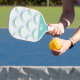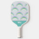 This pickleball paddle design features dreamy pastel rainbows against a pale aqua background, with white initials in a fun text style against an aqua color block. This fun pattern is great way to personalize your pickleball paddle and send your dinks over the rainbow. The paddle is shown with white trim, but other options are offered.