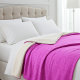 The sherpa blanket showcases an abstract, textile-inspired pattern in vibrant shades of rich pink and magenta. Its bold design and elegant aesthetic make it a striking addition to any modern home, blending warmth and style in perfect harmony.