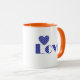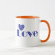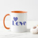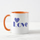 Fun, Elegant Blue Checkered Heart, "LOVE" Pattern Mug