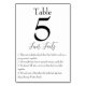 This modern and minimalist style wedding table number card features a simple design with elegant black font on a white background. A list of fun facts about the bride and groom or couple are printed below the table number. It's a simple and unique way to entertain your guests and let them see a personal side of you.