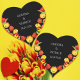 White Spring Watercolor Floral Wedding Napkins with personalized fun facts. The elegant and colorful design features hand-drawn tulips in shades of red and yellow with green botanical elements. Perfect for a rustic boho spring wedding. This item is a part of my Red and Yellow Spring Tulip Wedding Collection.