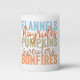 This vibrant and textured fall design highlights the quintessential elements of the autumn season with the words "Flannels," "Hayrides," "Pumpkins," "Sweaters," and "Bonfires." Each word is displayed in bold, uppercase letters, with a weathered texture that gives the design a rustic, vintage feel. The color palette includes cool blues, warm oranges, earthy greens, and soft browns, capturing the diverse colors of fall. The words "hayrides" and "sweaters" are written in a flowing, cursive script that contrasts beautifully with the blocky text, adding a touch of elegance and movement to the design. Tiny star accents are scattered around the text, adding an extra layer of charm and playfulness.