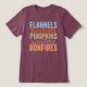 This vibrant and textured fall design highlights the quintessential elements of the autumn season with the words "Flannels," "Hayrides," "Pumpkins," "Sweaters," and "Bonfires." Each word is displayed in bold, uppercase letters, with a weathered texture that gives the design a rustic, vintage feel. The color palette includes cool blues, warm oranges, earthy greens, and soft browns, capturing the diverse colors of fall. The words "hayrides" and "sweaters" are written in a flowing, cursive script that contrasts beautifully with the blocky text, adding a touch of elegance and movement to the design. Tiny star accents are scattered around the text, adding an extra layer of charm and playfulness.
