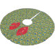 Need a unique Christmas tree skirt? This wild animal print in a fun fantasy peacock print with a red satin bow and peacock lining is a great addition to that themed Christmas party you are hosting. NOTE: NO real bow is on this product it is artistically designed to appear real