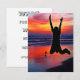 This is a beautiful sunset on the beach, with a silhouette of a man jumping. It could be a father, a brother, a son, or a friend having fun. This would work for many occasions, a perfect unique picture for Father's Day, birthday invitations, or even for a bachelor party announcement. This photograph appears on stationary from cards to postage stamps. Have fun!