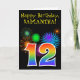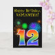 Fun Fireworks + Rainbow Pattern "12" Birthday # Card