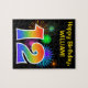 Fun Fireworks + Rainbow Pattern "12" Birthday # Jigsaw Puzzle