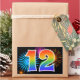 This fun, vibrant sticker design features a colorful pattern inspired by celebratory fireworks, along with the number "12" featuring a multicolored rainbow inspired gradient pattern, on a black colored background. Stickers like this could perhaps be given as a small gift while celebrating somebody’s twelfth birthday, or perhaps for a couple’s twelfth wedding anniversary, or some other 12th event. [~Z0000324]