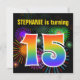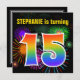 Fun Fireworks + Rainbow Pattern "15" Birthday # Invitation