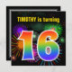 Fun Fireworks + Rainbow Pattern "16" Birthday # Invitation