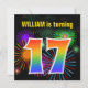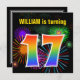 Fun Fireworks + Rainbow Pattern "17" Birthday # Invitation