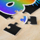 This fun, vibrant puzzle design features a colorful celebratory fireworks inspired pattern, along with the number "18" featuring a multicolored rainbow like gradient pattern, on a black colored background. It also features a personalized name and event message, such as a birthday greeting. A puzzle like this might be a fun way to send a birthday message to celebrate somebody’s eighteenth birthday. [~Z0000329]