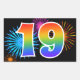 Fun Fireworks + Rainbow Pattern "19" Event Number Rectangular Sticker