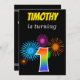 Fun Fireworks + Rainbow Pattern "1" Birthday # Invitation