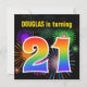 Fun Fireworks + Rainbow Pattern "21" Birthday # Invitation