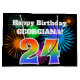 This fun, vibrant gift bag design features a colorful celebratory fireworks inspired pattern, along with the number "24" featuring a multicolored rainbow inspired gradient pattern, on a black colored background. It also features a personalized name and event message, such as a birthday greeting. A colorful and joyful gift bag like this might be used when giving a gift or present to somebody who is celebrating their twenty fourth birthday. [~Z0000328]