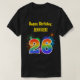 This fun, vibrant shirt design features a colorful pattern inspired by bursting celebratory fireworks, along with the number "26" having a multicolored rainbow like spectrum or gradient pattern. It also features a personalized name and event message, such as a "Happy Birthday" birthday greeting. A shirt like this might be worn by the guests at a birthday party being held to celebrate somebody’s twenty sixth birthday. [~Z0000332]