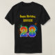 This fun, vibrant shirt design features a colorful pattern inspired by bursting celebratory fireworks, along with the number "28" having a multicolored rainbow like spectrum or gradient pattern. It also features a customizable name and event message, such as a "Happy Birthday" birthday greeting. A shirt like this might be worn by the guests at a birthday party being held to celebrate somebody’s twenty eighth birthday. [~Z0000332]