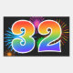 Fun Fireworks + Rainbow Pattern "32" Event Number Rectangular Sticker