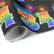 This fun, vibrant wrapping paper design features a colorful celebratory fireworks inspired pattern, along with the number "34" featuring a multicolored rainbow inspired gradient pattern, on a black colored background. Wrapping paper like this could perhaps be used when wrapping gifts or presents being given for somebody’s thirty fourth birthday, or perhaps for a couple’s thirty fourth wedding anniversary, or some other 34th event. [~Z0000322]