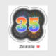 This fun, exciting sticker design features a colorful bursting celebratory fireworks inspired pattern, along with the number "35" featuring a multicolored rainbow inspired spectrum or gradient pattern. An exciting sticker like this might be used when celebrating somebody’s thirty fifth birthday, or perhaps a couple’s thirty fifth wedding anniversary, or some other 35th event. [~Z0000362]