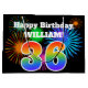 This fun, vibrant gift bag design features a colorful pattern inspired by celebratory fireworks, along with the number "36" featuring a multicolored rainbow inspired gradient pattern, on a black colored background. It also features a custom name and event message, such as a birthday greeting. A colorful and joyful gift bag like this might be used when giving a gift or present to somebody who is celebrating their thirty sixth birthday. [~Z0000328]