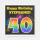 This fun, vibrant paper napkin design features a colorful pattern inspired by celebratory fireworks, along with the number "40" having a multicolored rainbow inspired gradient pattern, on a black colored background. It also features a personalized name and event message. Paper napkins like this could perhaps be used at a party being held to celebrate somebody’s fortieth birthday. [~Z0000326]