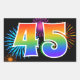 Fun Fireworks + Rainbow Pattern "45" Event Number Rectangular Sticker