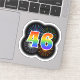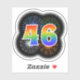 This fun, vibrant sticker design features a colorful pattern inspired by bursting celebratory fireworks, along with the number "46" having a multicolored rainbow inspired spectrum or gradient pattern. A sticker like this might perhaps be used when celebrating somebody’s forty sixth birthday, or perhaps a couple’s forty sixth wedding anniversary, or some other 46th event. [~Z0000362]