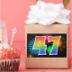 This fun, vibrant sticker design features a colorful celebratory fireworks inspired pattern, along with the number "47" featuring a multicolored rainbow inspired gradient pattern, on a black colored background. Stickers like this could perhaps be used at a party celebrating somebody’s forty seventh birthday, or perhaps for a couple’s forty seventh wedding anniversary, or some other 47th event. [~Z0000324]