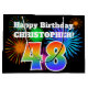 This fun, vibrant gift bag design features a colorful celebratory fireworks inspired pattern, along with the number "48" having a multicolored rainbow like gradient pattern, on a black colored background. It also features a custom name and event message, such as a birthday greeting. A gift bag like this might be used to wrap a present or gift being given in celebration of somebody’s forty eighth birthday. [~Z0000328]