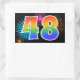 This fun, vibrant sticker design features a colorful celebratory fireworks inspired pattern, along with the number "48" having a multicolored rainbow inspired gradient pattern, on a black colored background. Stickers like this might be given as a small gift while celebrating somebody’s forty eighth birthday, or perhaps for a couple’s forty eighth wedding anniversary, or some other 48th event. [~Z0000324]