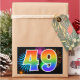 This fun, vibrant sticker design features a colorful pattern inspired by celebratory fireworks, along with the number "49" having a multicolored rainbow inspired gradient pattern, on a black colored background. Stickers like this might be used at a party celebrating somebody’s forty ninth birthday, or perhaps for a couple’s forty ninth wedding anniversary, or some other 49th event. [~Z0000324]